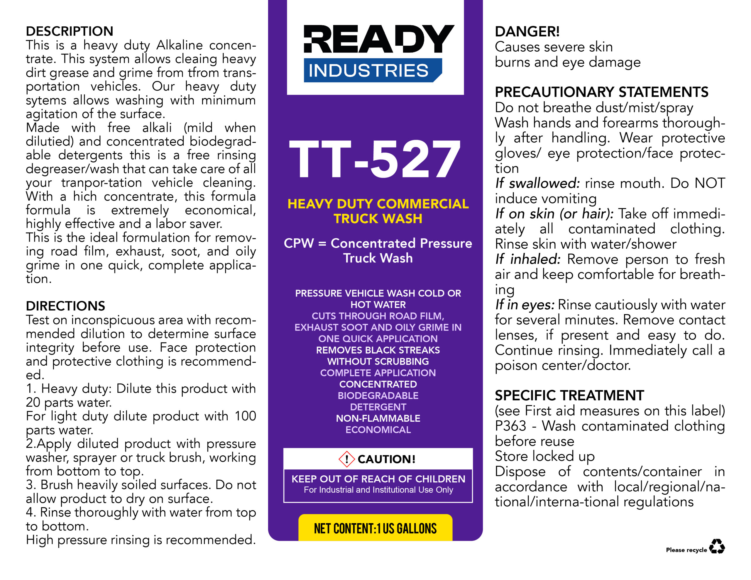 Choosing Ready Industries TT-527 means investing in a reliable, powerful, and environmentally friendly cleaning solution for your commercial vehicles. Our commitment to quality ensures that you receive a product that not only meets but exceeds your cleaning needs. Experience the effectiveness and convenience of Ready TT-527, the heavy-duty commercial truck wash that professionals trust.